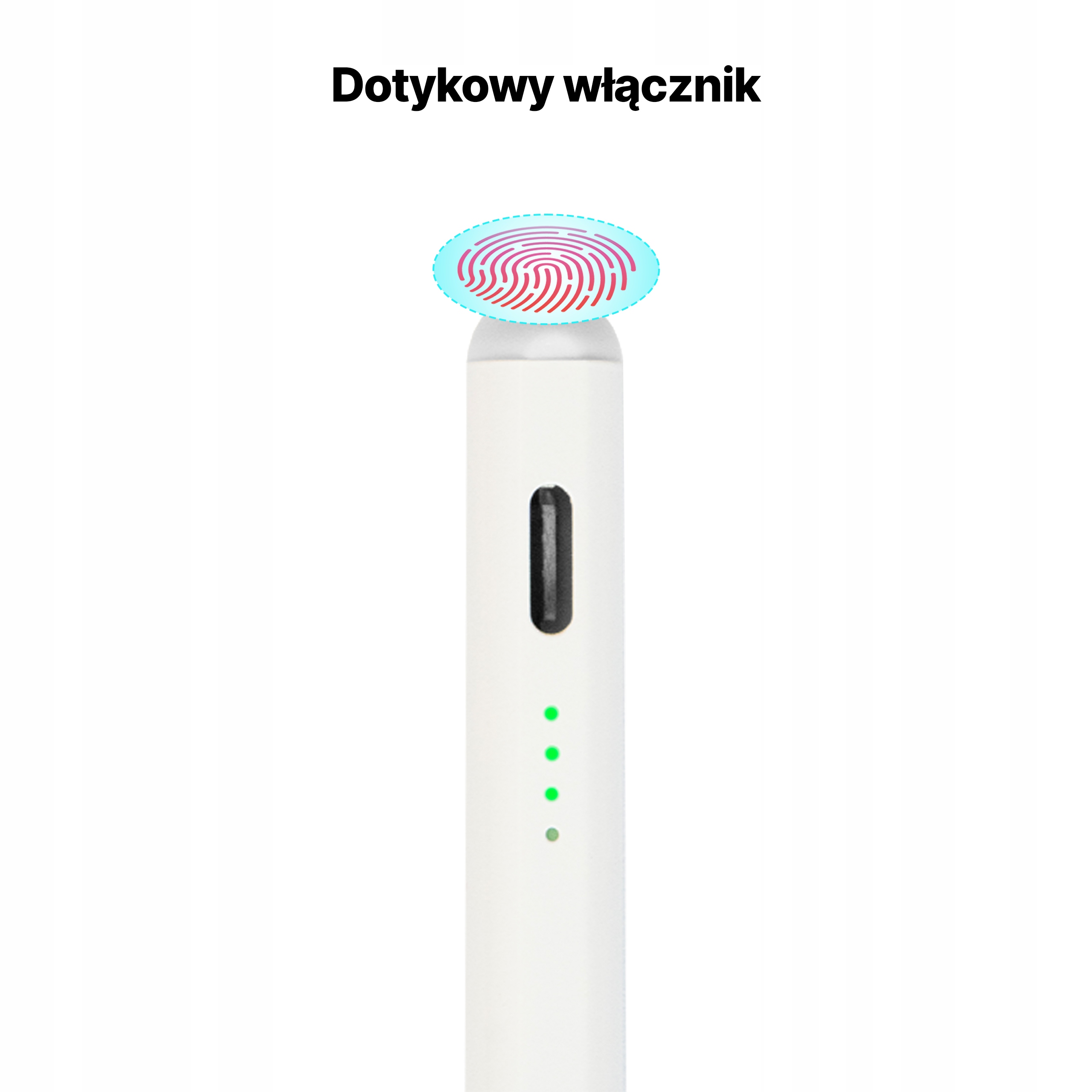 Aby uruchomić uniwersalny rysik do tabletu i telefonu, wystarczy dotknąć lub lekko nacisnąć włącznik umieszczony na górze rysika — nie trzeba go wciskać. Rysik nie wymaga parowania Bluetooth ani instalowania aplikacji i zaczyna działać od razu po włączeniu.