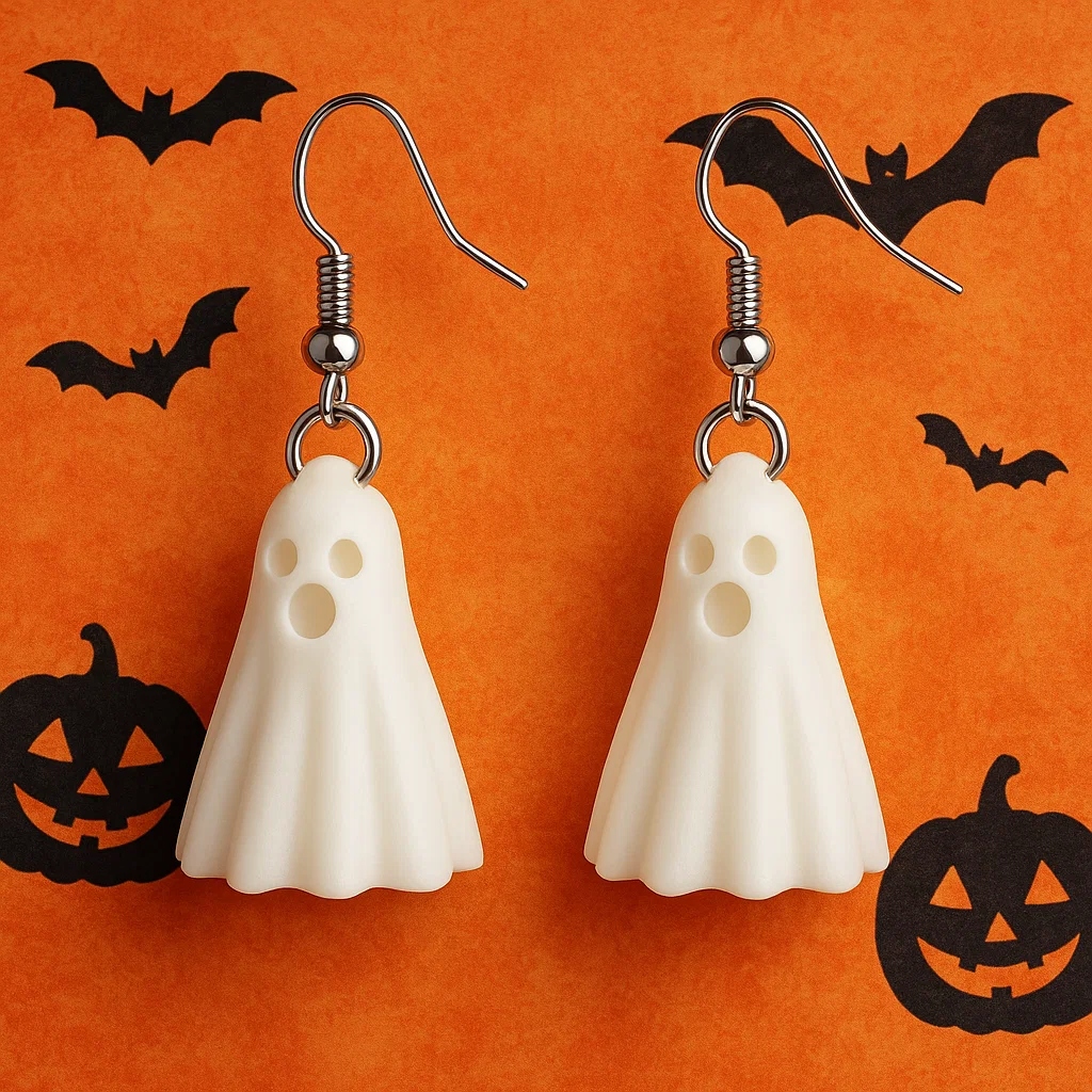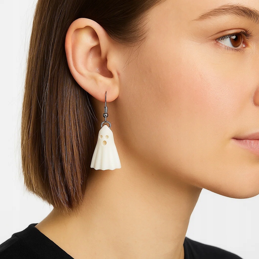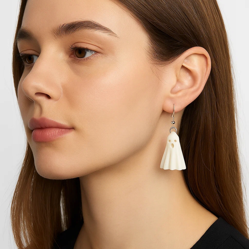 Kolczyki Halloween Duszki Białe – Biżuteria Imprezowa Straszne Ozdoby