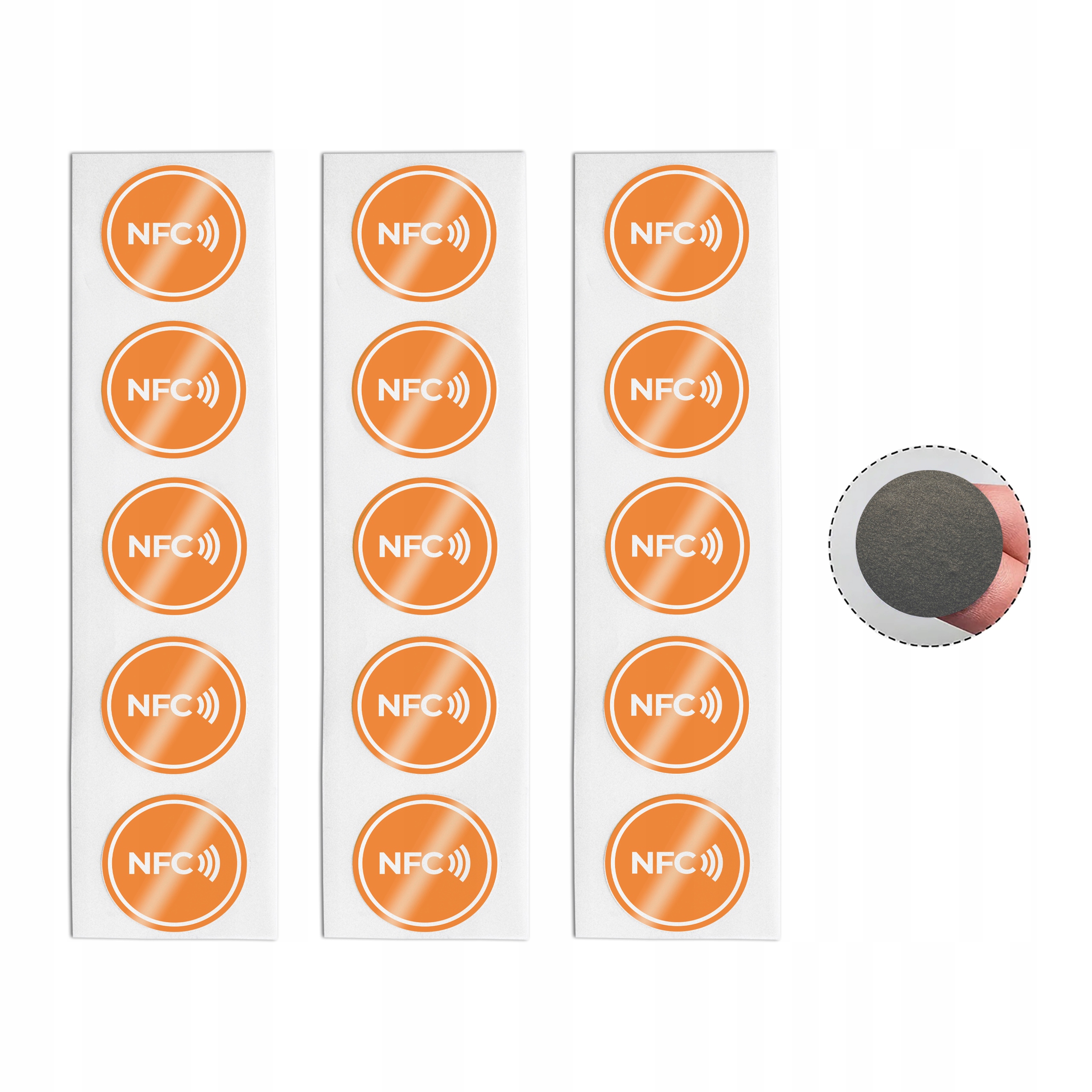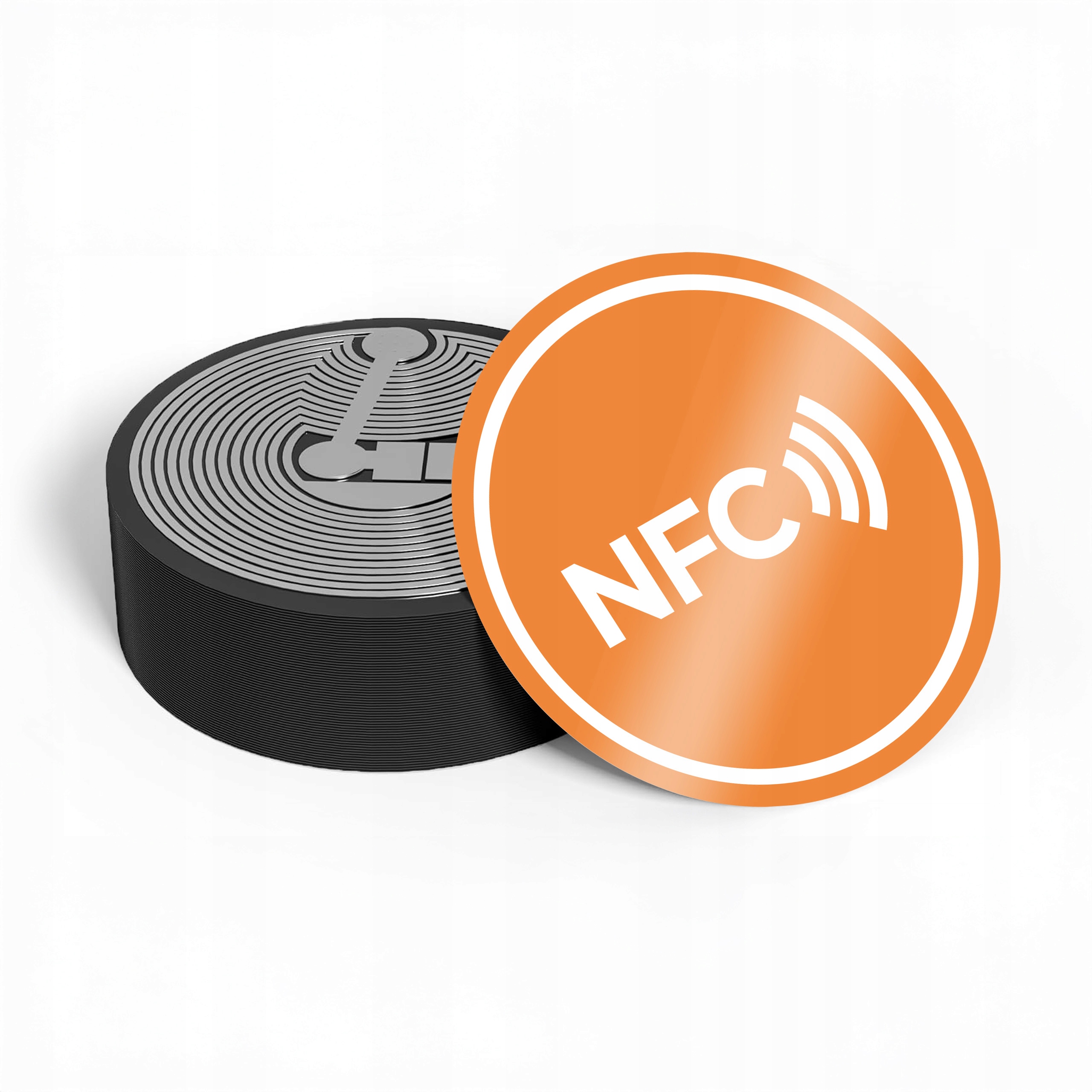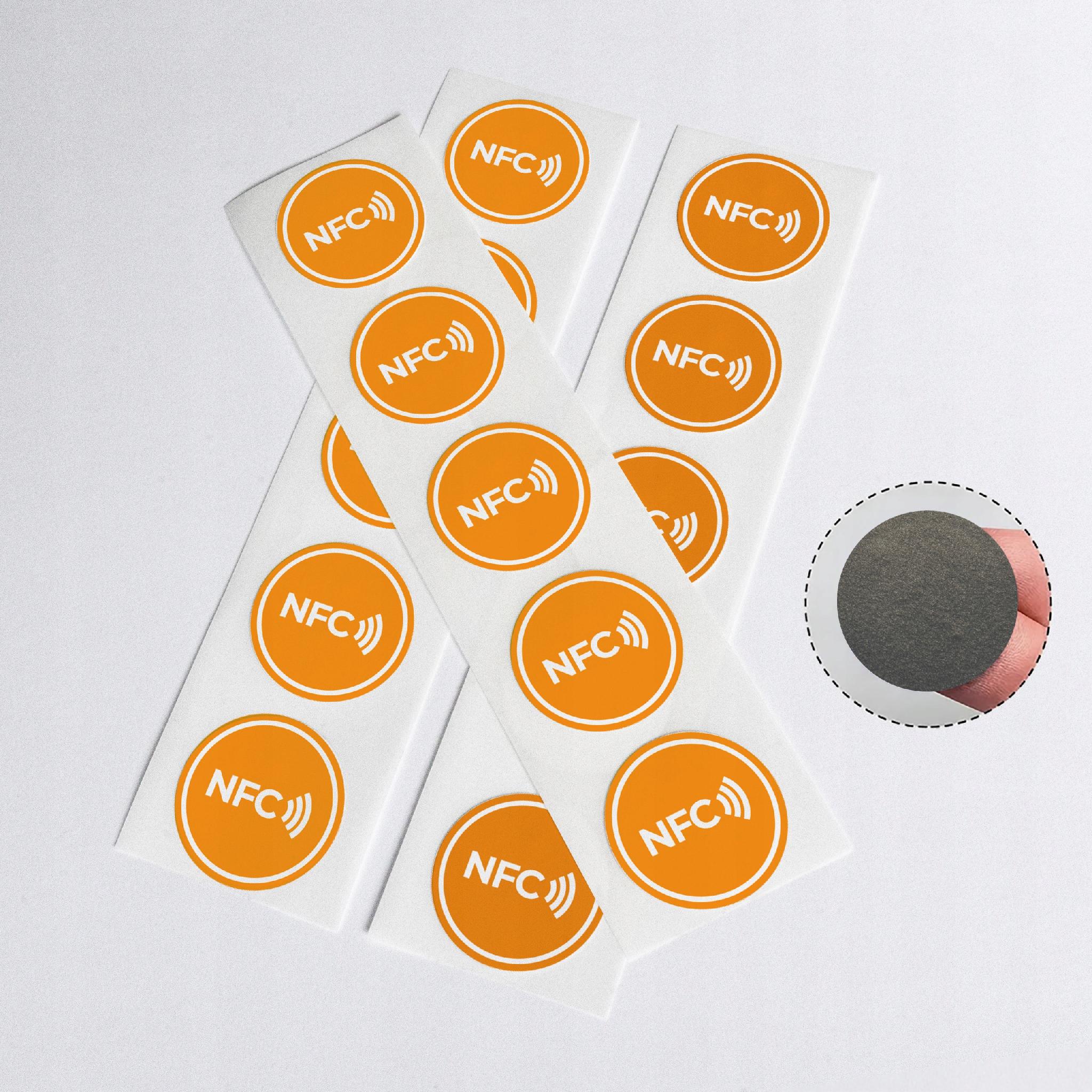 Antymetalowe tagi NFC z pomarańczową naklejką