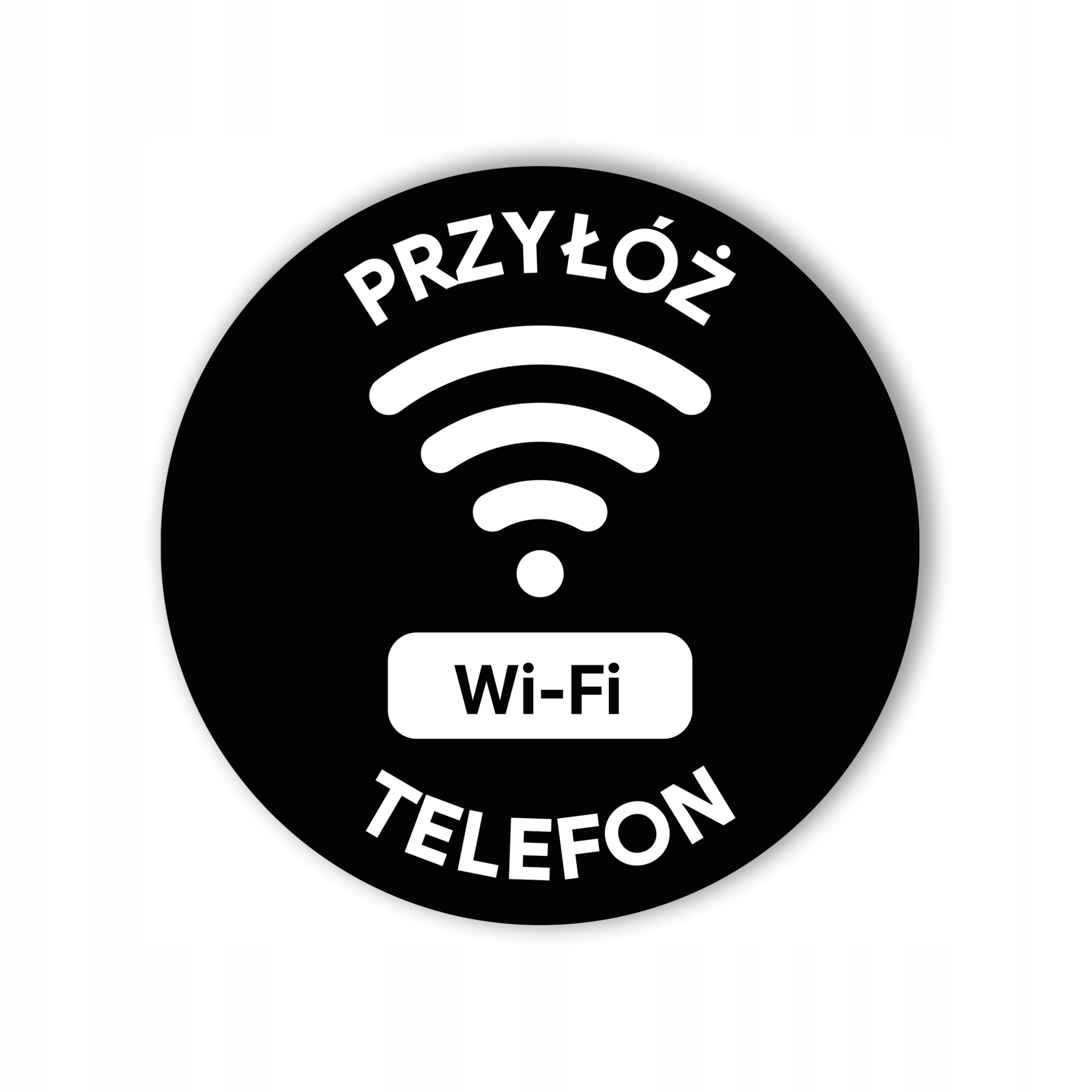 Tagi NFC Wi-Fi – zestaw 10 szt., czarna naklejka Ø25 mm „Przyłóż telefon”