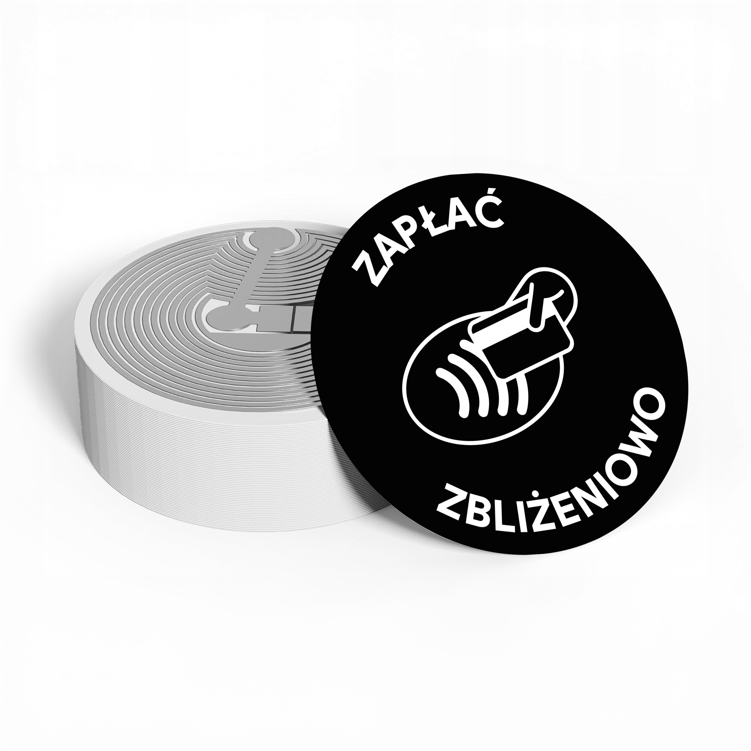 Estetyczne, okrągłe tagi NFC z czarną naklejką „Zapłać zbliżeniowo” to nowoczesny sposób na przyjmowanie płatności bezgotówkowych. Idealnie sprawdzają się w punktach usługowych, lokalach gastronomicznych, salonach beauty, sklepach, klubach, barach czy taksówkach.