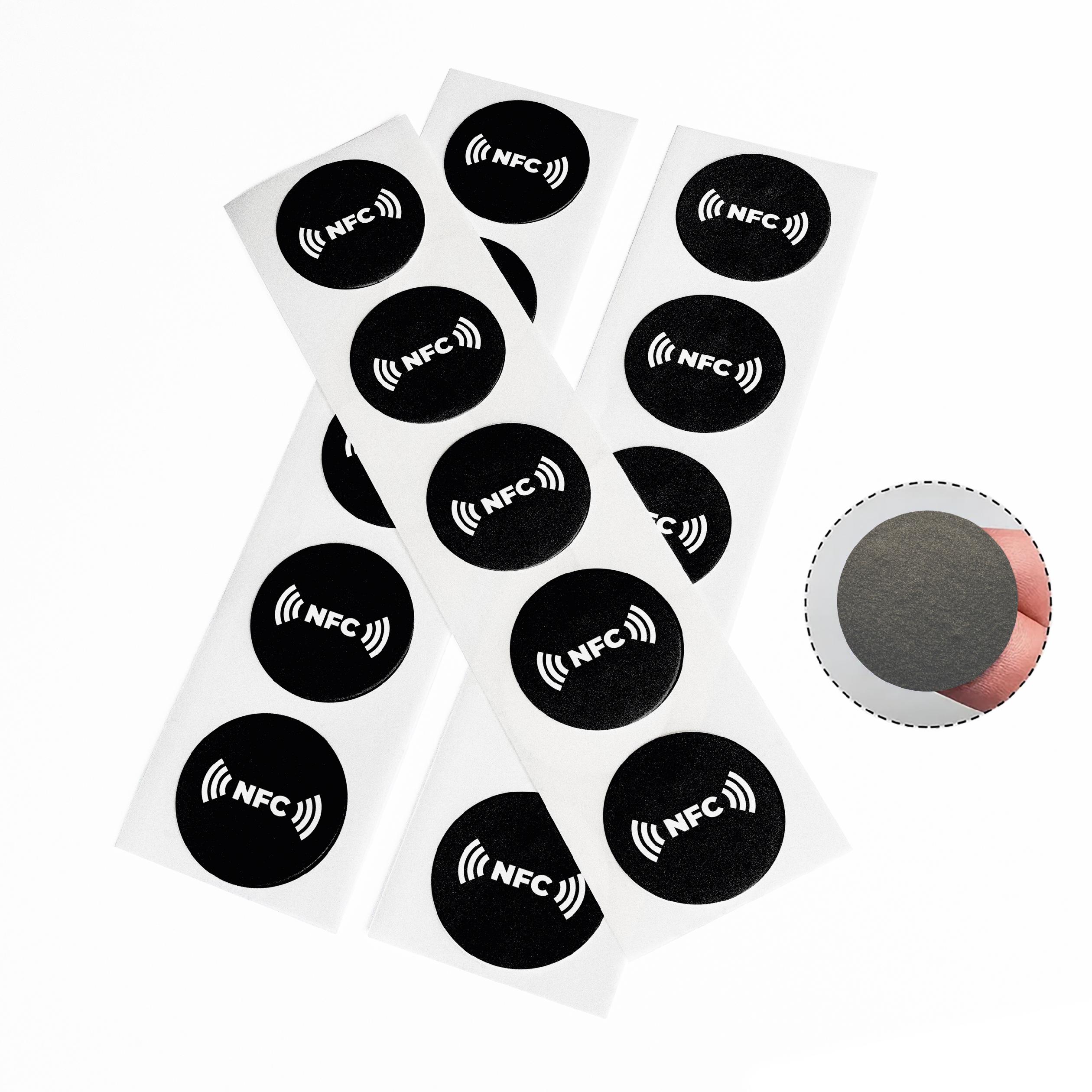 Tag NFC z czarną naklejką „NFC” z ferrytem – komplet 10 sztuk