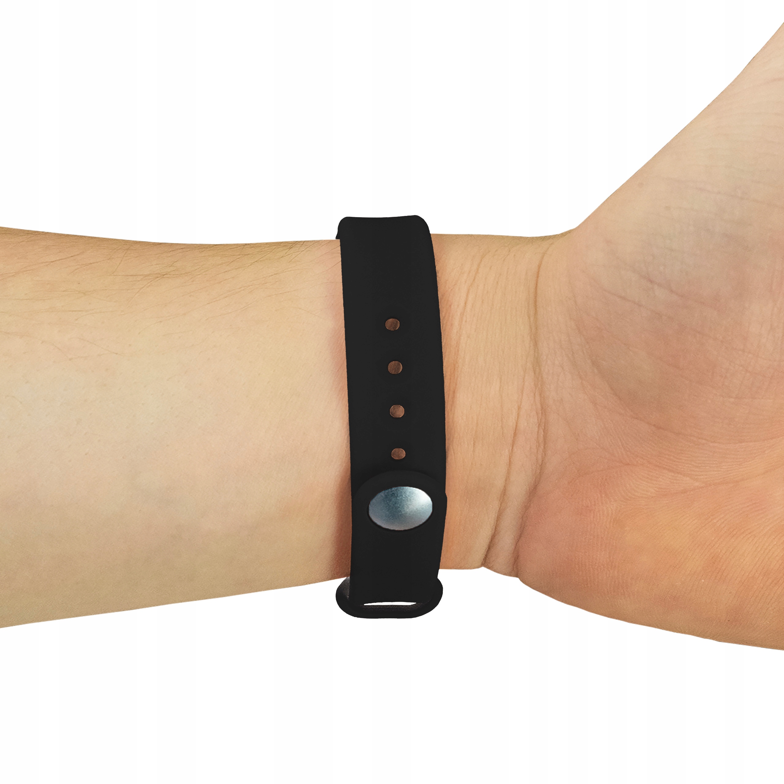 Opaska wykonana jest z elastycznego, wodoodpornego silikonu, który dobrze znosi wilgoć, pot oraz codzienną eksploatację w wymagających warunkach. Gładka powierzchnia oraz brak ostrych elementów zwiększają komfort użytkowania i bezpieczeństwo podczas pracy w dynamicznym środowisku.